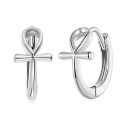 Simple Ankh croix cerceau Huggie boucles d'oreilles pour femmes 925 argent Sterling Ankh croix oreille manchettes famille amant bijoux cadeau SCE1928