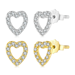 925 argent Sterling 18K évidé coeur boucles d'oreilles pour femmes clair CZ mignon Piercing boucles d'oreilles brillant bijoux Date cadeau SCE1727