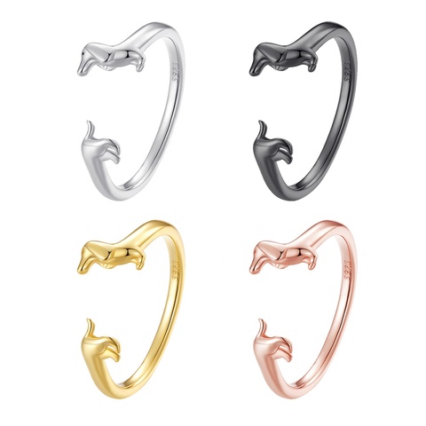 Bán buôn 925 sterling Silver Dachshund Dog nhẫn có thể điều chỉnh dễ thương động vật mở vòng đối với phụ nữ đồ trang sức mỹ món quà cưới scr894