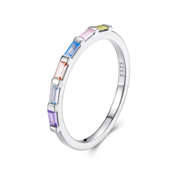925纯银彩虹可堆叠指环女女孩彩色水晶矩形戒指声明珠宝BSR697