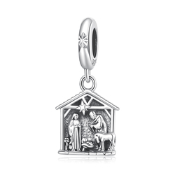旧货925纯银耶稣诞生场景魅力耶稣吊坠适合DIY手链项链SCC3140